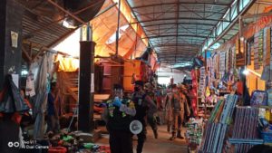 Dengan cara jalan kaki langsung memantau dan berdialog dengan masyarakat yang sedang beraktifitas didalam pasar, bertanya seputar situasi kamtibmas yang ada di Pasar.