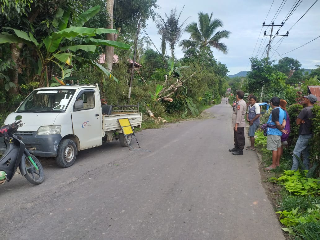 Personil polsek sangalla yang dipimpin oleh Bripka Zaiful Rahman dan Briptu suhendar antisipasi kemacetan pada penebangan pohon yang menanggu kabel utama yang dilakukan oleh Pihak PLN