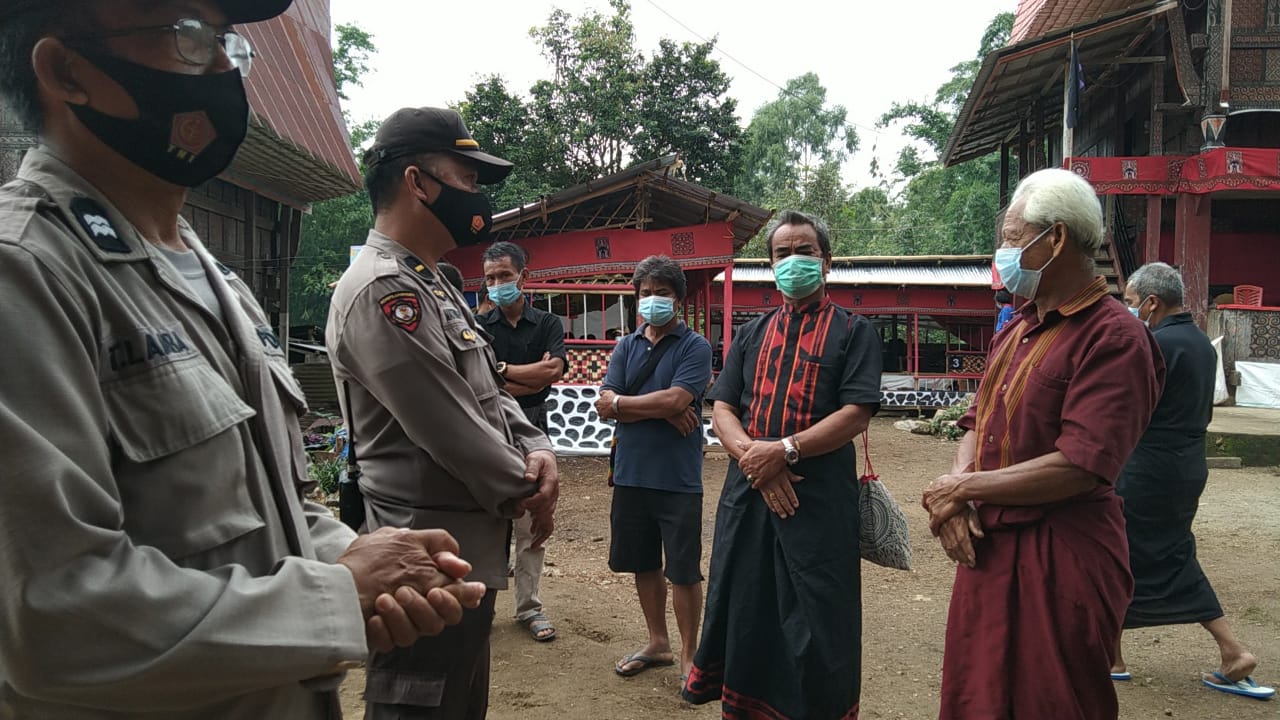 Polrestanatoraja.com – Pada hari Senin tanggal 11 Januari 2021 sekitar pukul 08.30 wita bertempat di Lingkungan Bokko Lembang Tumbang Datu Kec. Sangalla Utara Kab. Tana Toraja WaKapolsek Sangalla IPDA MATIUS PABANE bersama Ps.Kanit Binmas Polsek Sangalla Aiptu Thomas Lamba, P.s Ka Sium Bripka Darwis, Bhabinkamtibmas Polsek Sangalla Bripka Saiful Rahman, Brigpol Subrianus, dan Briptu Zaitun yang dibantu Babinsa 2 orang anggota Koramil Sangalla melaksanakan upaya pemberhentian giat keramaian dalam rangka Acara Rambu Solo ALM. PAULUS AMBO di Upacara Adat rambu Solo’ di rumah kediaman Almarhum.