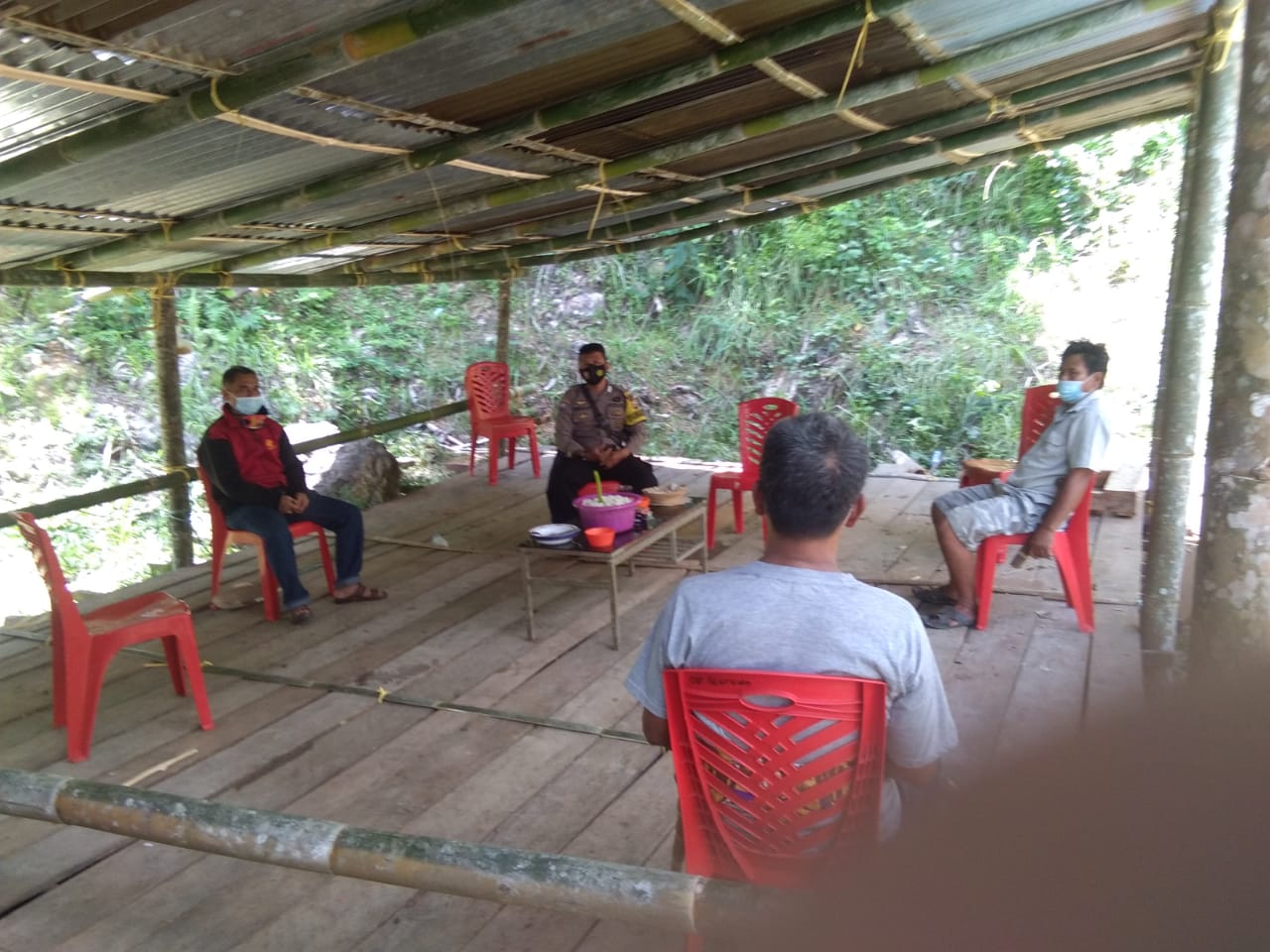 Dalam kesempatan tersebut bhabinkamtibmas menyampaikan kepada pihak keluarga bahwa atas perintah tegas bapak kapolres Tana Toraja agar tidak melakukan kegiatan yang mengumpulkan banyak orang / kerumunan banyak orang serta menunda kegiatan resepsi pernikahan tersebut, demi memutus mata rantai penyebaran covid 19 selalu memperhatikan Protokol Kesehatan 5 M ( memakai masker, Mencuci Tangan, Menjaga Jarak, Menjauhi Kerumunan dan Membatasi Mobilitas ).