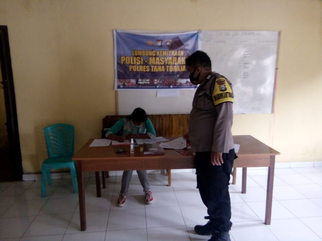 Polrestanatoraja.com – Sabtu tanggal 16 Januari 2021 sekitar pukul 10:00 wita Bhabinkamtibmas Polsek Sangalla Bripka ELI BURANDA. memberikan pelayanan terhadap warga yang ingin membuat skck di kantor polsek SANGALLA kec. Sangalla Kab. Tana toraja