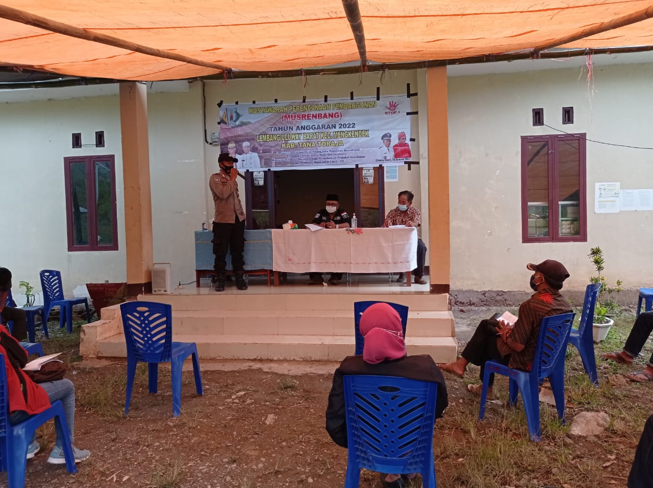 Bahwa dalam kegiatan musrembang bhabinkamtibmas menghimbau seluruh peserta musrembang agar bekerja sama dalam menghimbau masyarakat mematuhi protokol kesehatan secara khusus dalam setiap kegiatan masyarakat baik pesta rambu solo’ dan rambu tuka’ dan juga menghimbau agar penanggung jawab benar-benar memahami dan menyadari akan tanggung jawab di setiap kegiatan tentang protokol kesehatan, selain itu Bhabinkamtibmas juga menghimbau agar tidak ada judi dalam bentuk apapun di wilayah binaan dan jika terjadi maka semua pihak bertanggung jawab termasuk pemilik lokasi/tempat terlaksananya judi sebagai konsekuensi hukum.