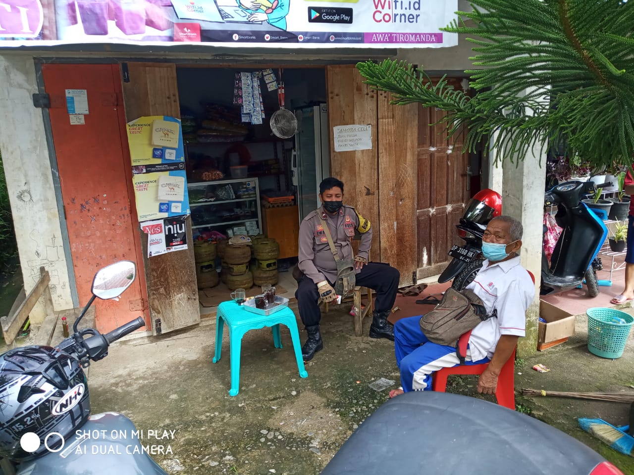 Dalam kegiatan tersebut Bhabinkamtibmas memberi himbauan kepada masyarakat untuk selalu mematuhi protokol kesehatan yaitu memakai masker,mencuci tangan,menjaga jarak,tidak berkerumun pada saat keluar rumah.
