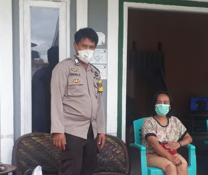 juga Bhabinkamtibmas memberikan himbauan kepada warga yang dijumpai untuk mengikuti Protokol Kesehatan dalam rangka memutuskan penyebaran Covid 19.