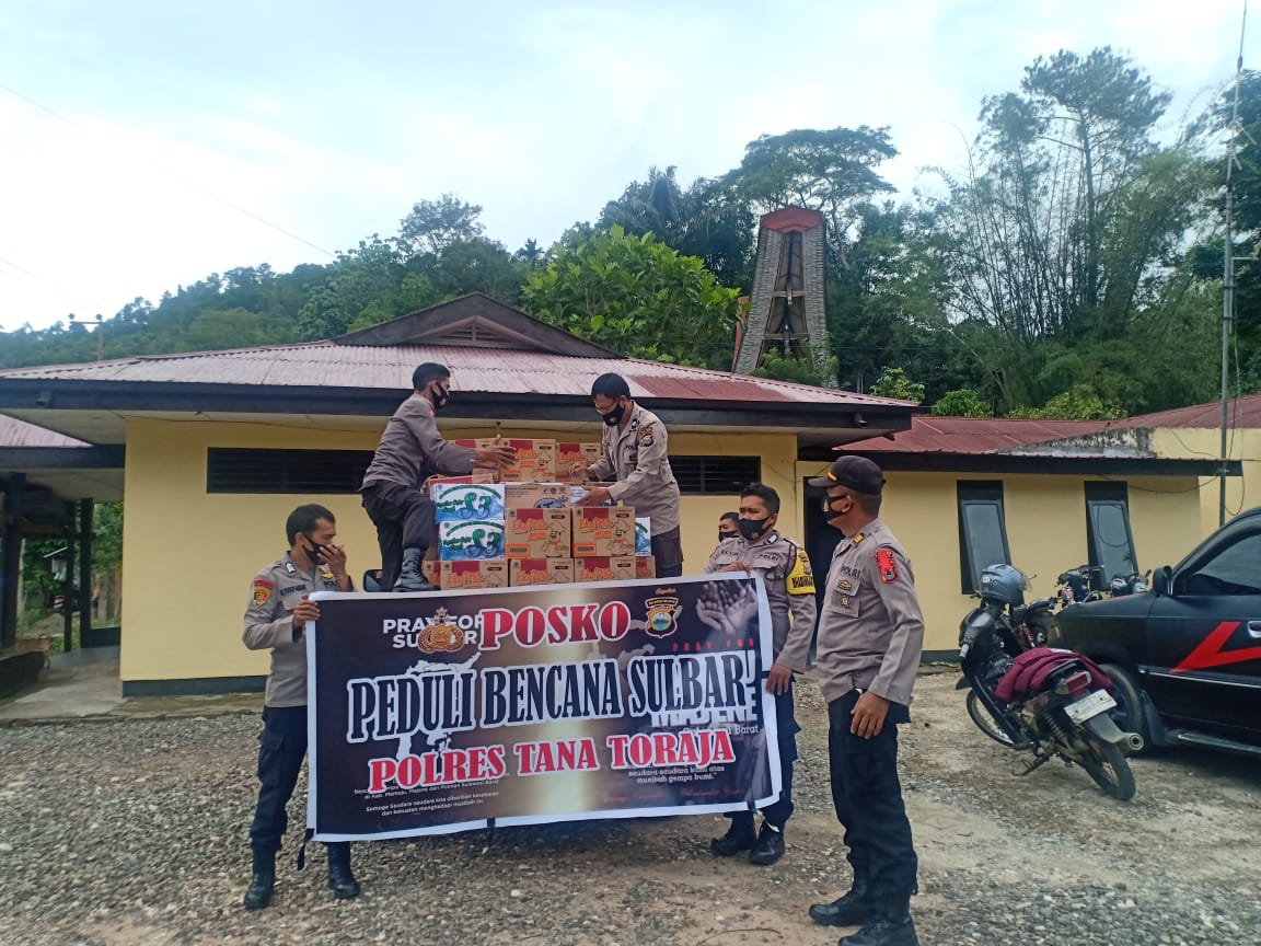 Kapolsek Sangalla Menerima Bantuan Dari Masyarakat Bantuan ke posko Peduli gempa Sulbar Tana Toraja