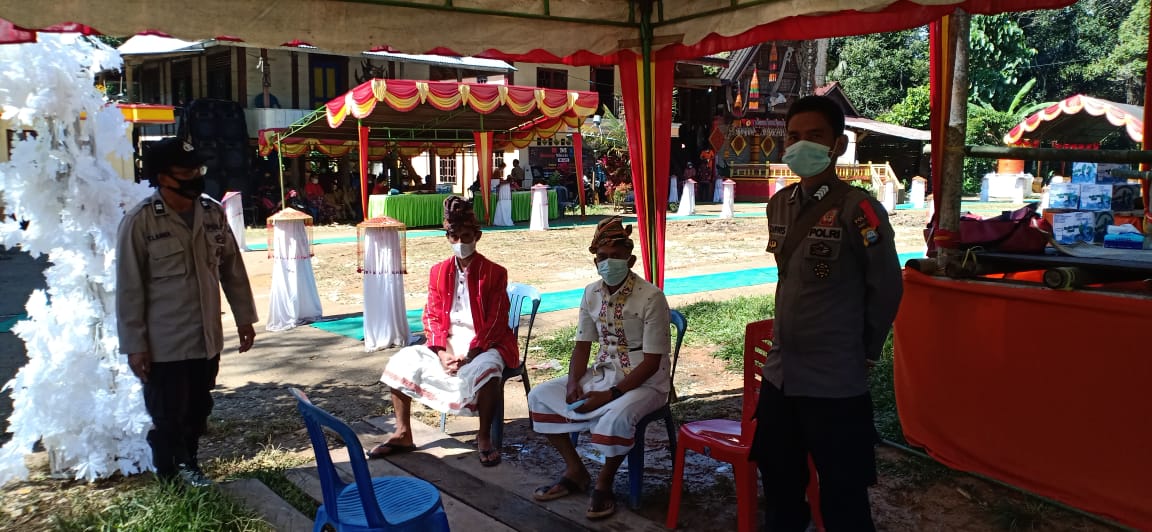 Giat dimpinpin Oleh Ps.Kanit Binmas Aiptu Thomas Lamba bersama ,Ps.Kanit Sabhara Aiptu Simon Kendek ,Ps.Kanit Kasium Darwis, Bhabinkamtibmas polsek Sangalla Briptu Zaitun. di dampingi oleh pihak Pemerintah Setempat Camat Sangalla Utara dan Lura Leatung bersama-sama Melaksanakan pengawasan dan Monitoring penerapan Protokol Kesehatan di pesta Acara adat Rambu Tuka’ / pernikahan sdr Yandri dengan Orpa Rantemanik