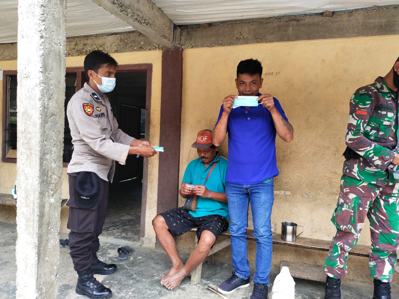Diselah himbauan tersebut Bhabinkamtibmas dan Babinsa juga membagikan Masker kepada warga binaannya.