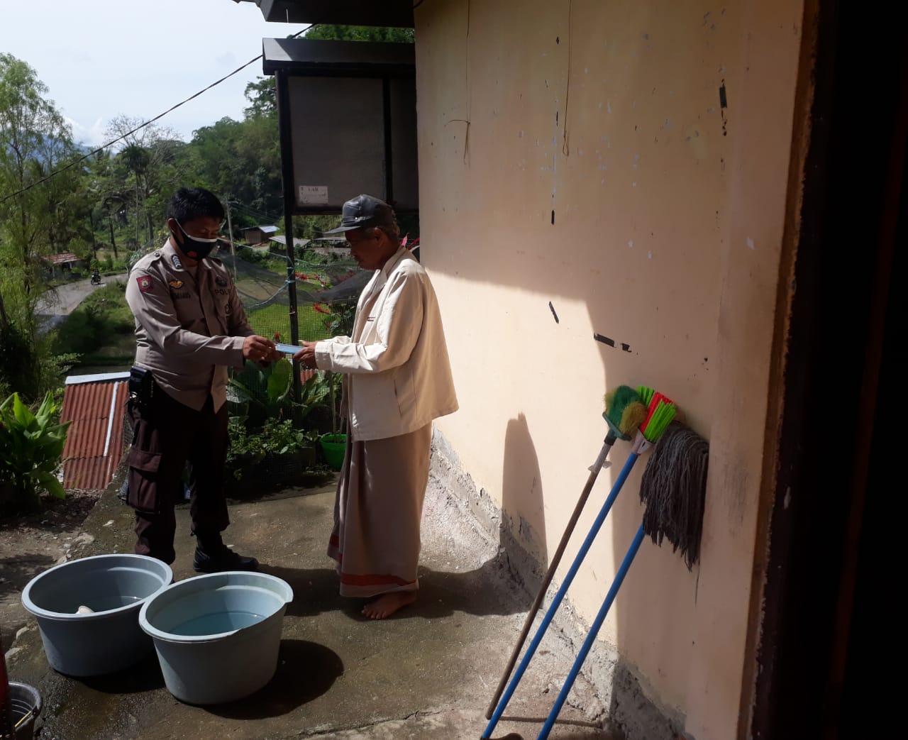 DDS Bhabinkamtibmas Bripka Demianus Rombe Memberikan Masker Kepada Masyarakat