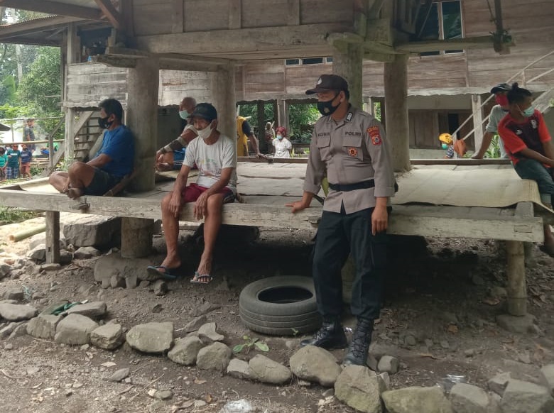Dalam giat tersebut Bhabinkamtibmas memberikan Himbauan Protokol kesehatan yaitu selalu Memakai masker, jaga jarak, mencuci tangan, menghindari kerumunan dan mengurangi mobilitas.