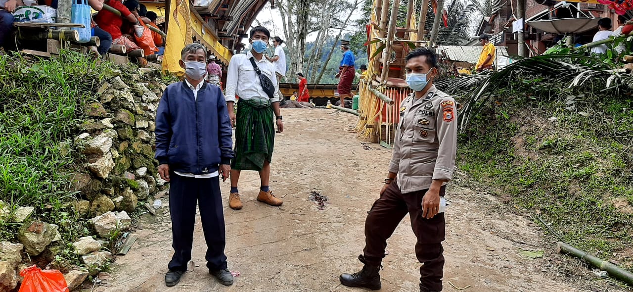 Personil Polsek Sangalla Himbau Protokol kesehatan pada Kegiatan adat rambu Tuka
