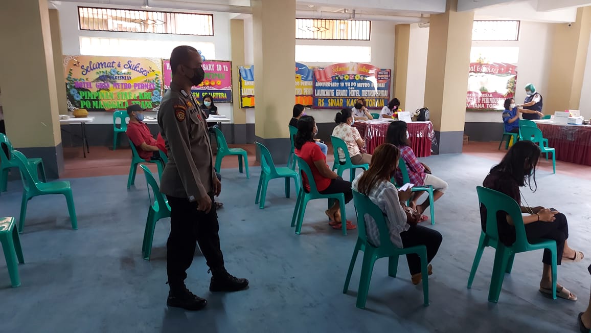 Polrestanatoraja.com – Rabu tanggal 19 Mei 2021 sekitar pukul 09.00 Wita, Bhabinkamtibmas Polsek Makale Bripka Rio novrianto melaksanakan monitoring dan pendampingan terhadap petugas dari Puskesmas Makale utara yang melaksanakan giat vaksinasi tahap I untuk layanan publik dengan jumlah sasaran peserta vaksin sebanyak 120 orang giat tersebut dilaksanakan di gedung hotel grand metro yang bertempat di rt. Mandetek kel. Tambunan kec. Makale utara kab. Tana toraja.
