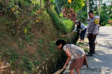 Bhabinkamtibmas Polsek Saluputti bersama Staf Lembang melaksanakan Kerja Bakti