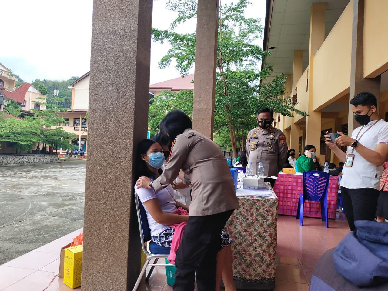 Kapolsek Makale pengawasan Penyelenggaraan Vaksinasi di SMA Katolik Makale