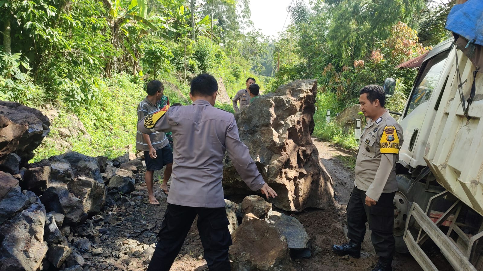 Bahwa material bencana alam tanah Longsor tersebut termasuk dengan adanya bebatuan yang ikut terjatuh menutupi badan jalan namun tetap dilewati oleh kendaraan baik kendaraan R2 maupun R4.