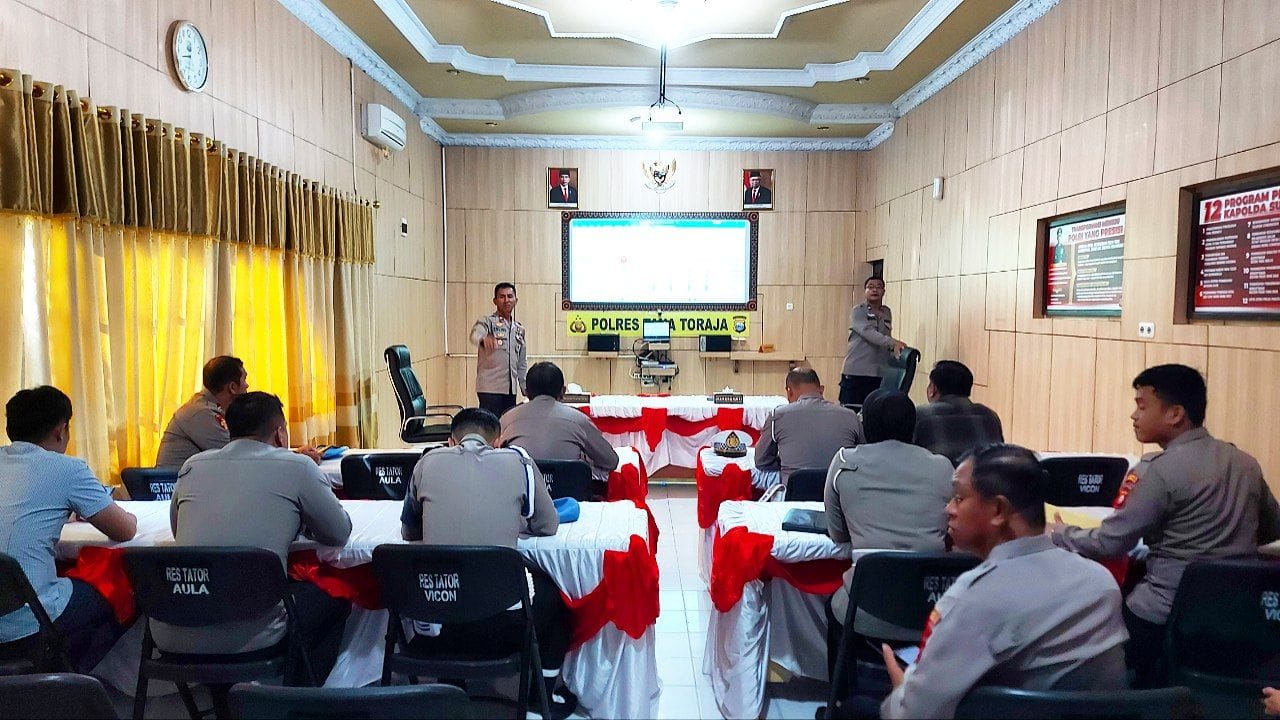 Polrestanatoraja.com – Selasa tanggal 16 Mei 2023 Pukul 08.30 Wita, Waka Polres Tana Toraja KOMPOL Yulius Losong Palayukan, S.H., didampingi Kabag Ren Polres Tana Toraja melaksanakan giat anev dan evaluasi kegiatan pelaporan Quick Wins Presisi di Ruang Vicon