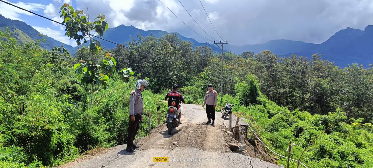 Personil Polsek Bonggakaradeng Patroli kondisi Jalan yang menghubungkan Dua Kecamatan