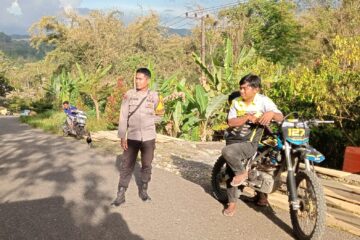 Dalam giat tersebut bhabinkamtibmas melaksanakan Pam Lalin serta memantau pelaksanaan keamanan pesta Rambu Solo” almalm.urbanus sarrang masora “