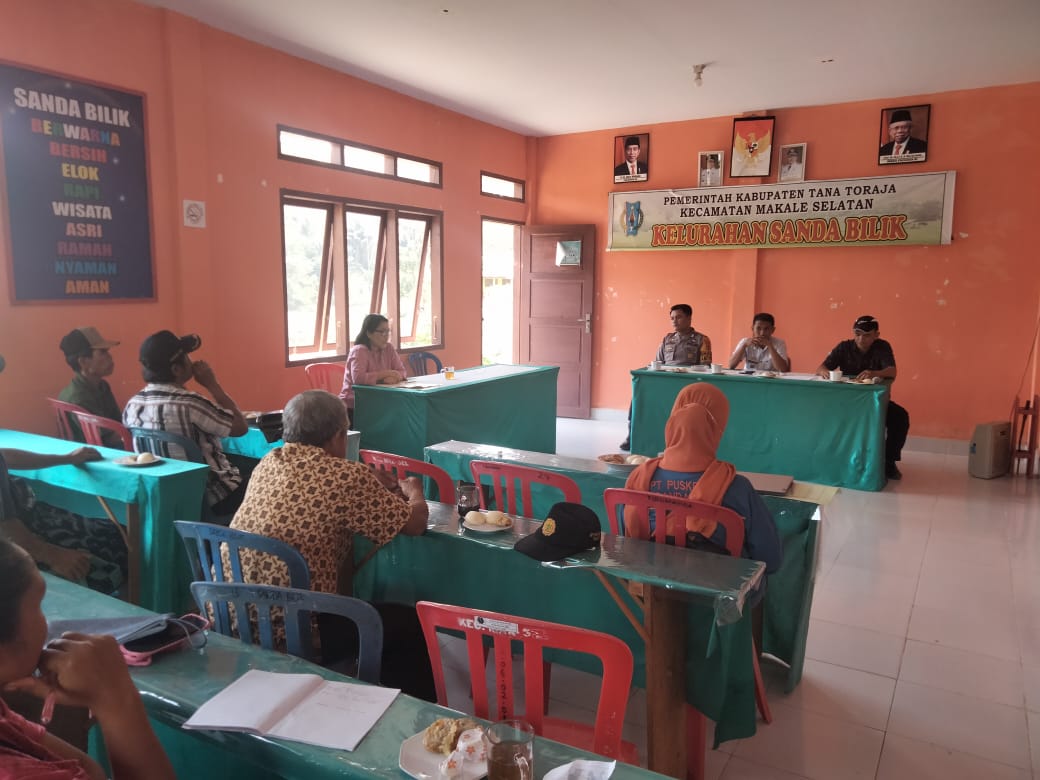 Bhabinkamtibmas polsek Makale menghadiri rapat koordinasi dikantor lurah sanda bilik
