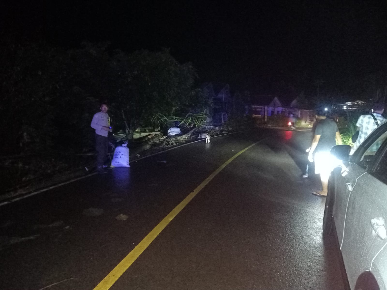 Polrestanatoraja.com – Kamis tanggal 07 Desember 2023 pukul 19.30 Wita, Bhabinkamtibmas Polsek Mengkendek Aipda Ishak Itan bersama Ka.Spk Aiptu Lukas Palamba’ setelah mendapatkan informasi dari masyarakat adanya pohon tumbang jenis Jabon yang menimpa kabel Litrik dan menyebabkan 1 buah tiang listrik dan 3 buah tiang kabel Telkomsel Roboh yang sempat menghalangi pengendara dari arah makassar – Toraja maupun sebaliknya yang bertempat di jalan poros toraja-enrekang Dusun Balulu Lembang Buntu Limbong Kec. Gandangbatu Sillanan Kab.Tator