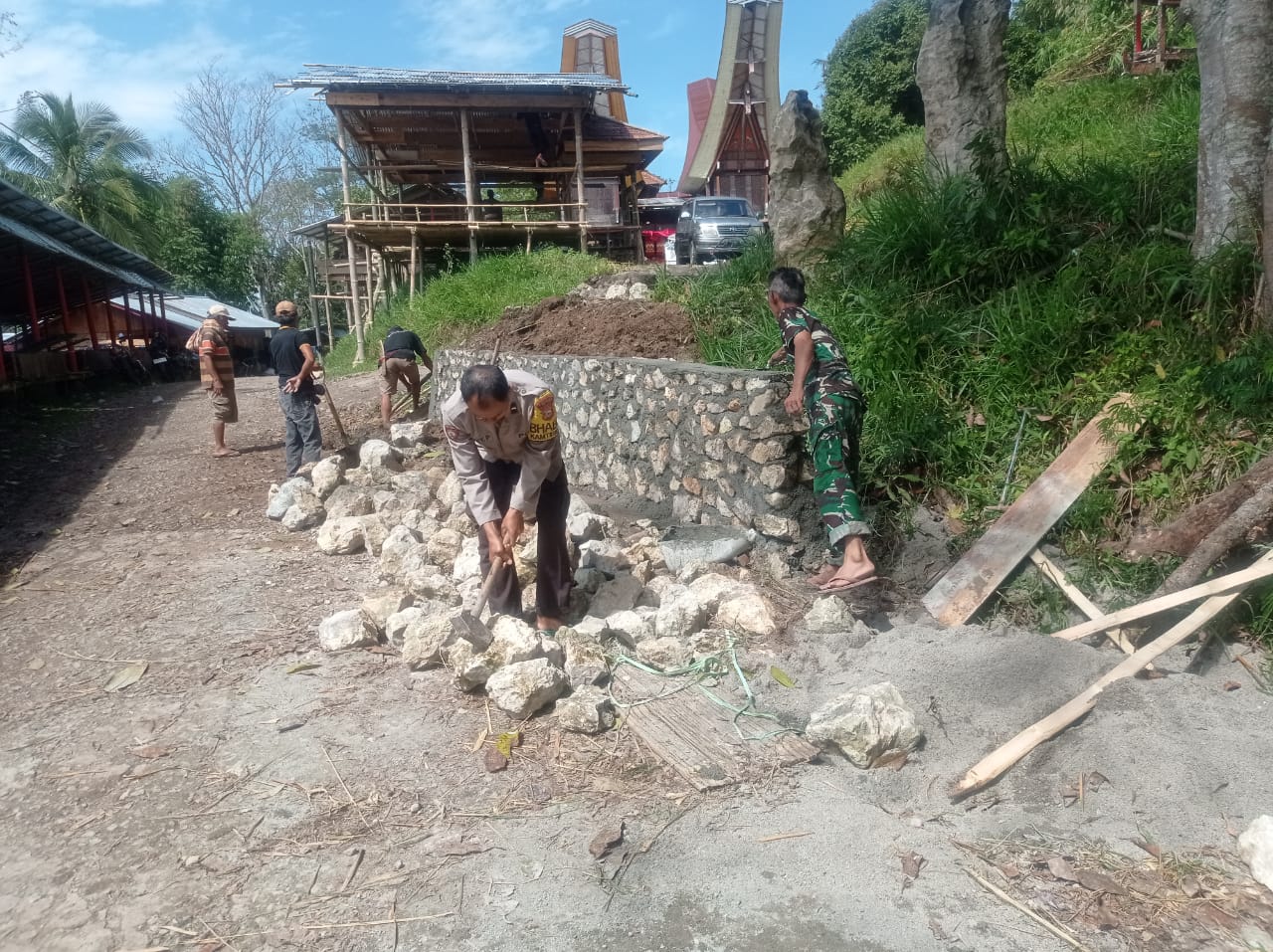 Tana Toraja, 7 Agustus 2025 – Wujud nyata sinergi antara TNI dan Polri kembali terlihat di lapangan. Bhabinkamtibmas Polsek Mengkendek, Aipda Jemi Palinggi’, bersama Bhabinsa Serka Julianto, melaksanakan kegiatan sambang kepada warga yang sedang memperbaiki saluran air di bahu jalan di Kampung Buntu Lamba, Lembang Sillanan, Kecamatan Gandang Batu Sillanan, Kabupaten Tana Toraja, pada Kamis (07/08/2025) sekitar pukul 10.00 WITA.
