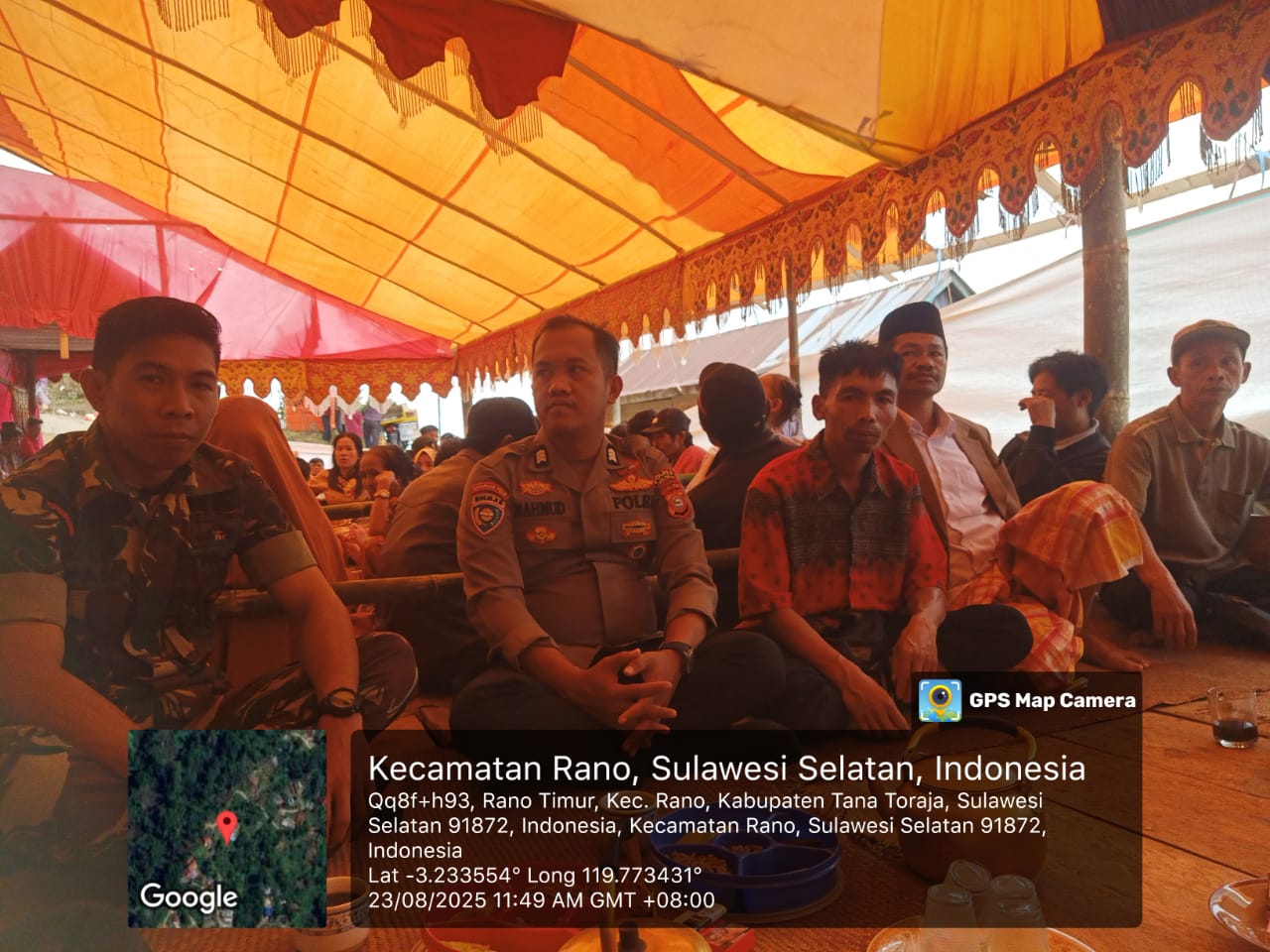 Tana Toraja, 23 Agustus 2025 – Dalam semangat mempererat hubungan sosial dengan masyarakat, Bhabinkamtibmas Polsek Bonggakaradeng, Brigpol Mahmud Tiku Kanan, menghadiri acara Rambu Tuka (upacara pernikahan) pasangan Ibrahim dan Marianti yang digelar di Lembang Rano Timur, Kecamatan Rano, Kabupaten Tana Toraja, pada Sabtu (23/8), sekitar pukul 11.00 WITA.