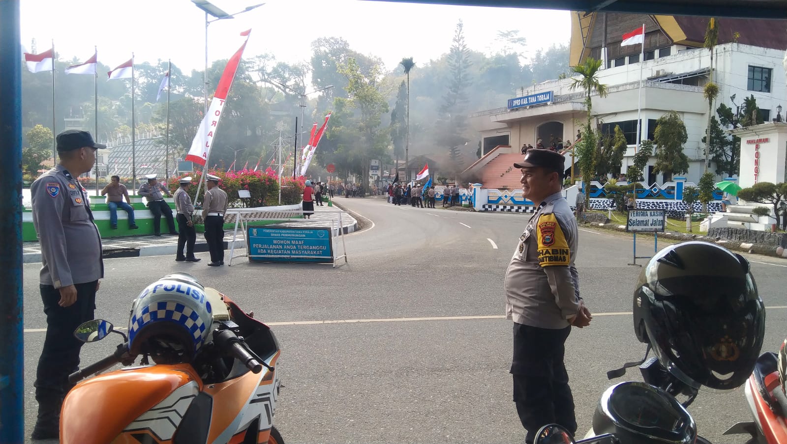 Bhabinkamtibmas Polsek Sangalla Amankan Aksi Unjuk Rasa di Depan Kantor DPRD Tana Toraja