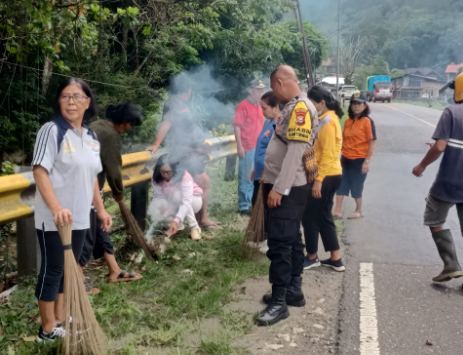 Kegiatan gotong royong ini menjadi agenda rutin setiap hari Jumat dan melibatkan seluruh elemen masyarakat setempat. Aipda Herman Pamaru turut serta bersama warga membersihkan bahu jalan, memungut sampah, serta memangkas rumput liar di area sekitar jalan poros utama.