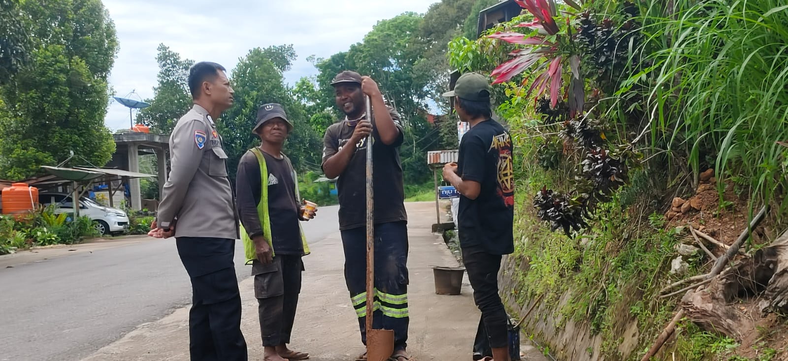 Pada kesempatan tersebut, Bripka Markus menyambangi sejumlah warga yang sedang melakukan perbaikan tiang-tiang listrik di wilayah setempat. Kehadiran Bhabinkamtibmas selain untuk menjalin silaturahmi juga bertujuan memberikan imbauan terkait keamanan lingkungan serta keselamatan kerja, mengingat aktivitas yang dilakukan warga memiliki risiko tertentu.