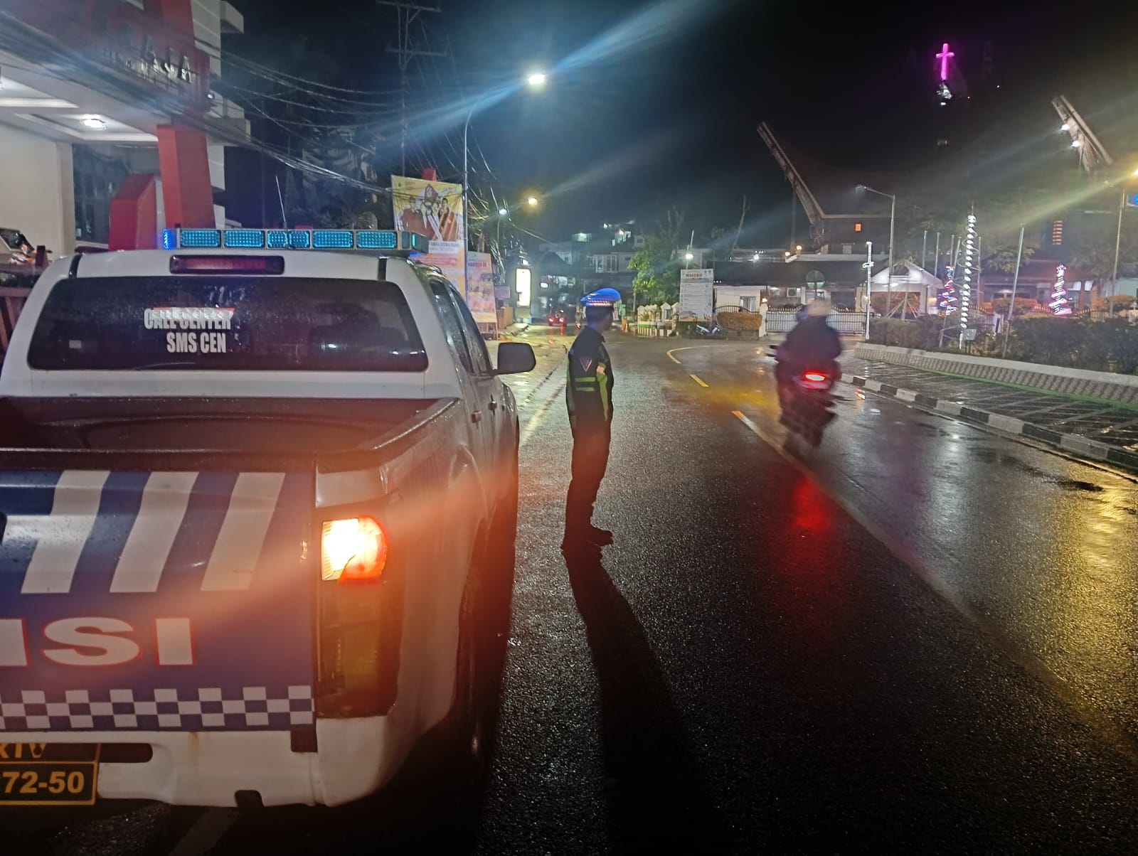 TANA TORAJA – Satuan Lalu Lintas Polres Tana Toraja melaksanakan Blue Light Patrol (BLP) atau patroli biru yang dipadukan dengan pengaturan arus lalu lintas di seputaran Kota Makale, Kabupaten Tana Toraja, Kamis malam (04/12/25).