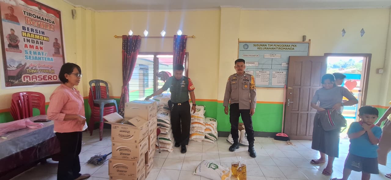Makale, Tana Toraja — Bhabinkamtibmas Polsek Makale Bripka Anthonius Ruru melakukan pemantauan langsung terhadap kegiatan penyaluran Bantuan Pangan Pemerintah Tahun 2025 yang berlangsung pada Rabu, 10 Desember 2025 sekitar pukul 10.00 WITA. Kegiatan tersebut dilaksanakan di Kantor Kelurahan Tiromanda, Kecamatan Makuang Selatan (Maksel), Kabupaten Tana Toraja.