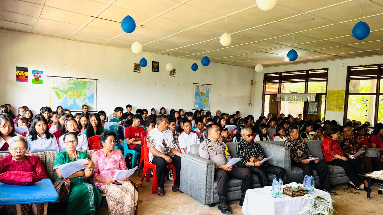 Ibadah dipimpin oleh Pendeta Yusak Tanggu Div.Th., berlangsung khidmat dan diikuti oleh seluruh civitas sekolah. Kehadiran Bhabinkamtibmas tidak hanya untuk memberikan rasa aman, tetapi juga sebagai bentuk dukungan Polri terhadap kegiatan keagamaan dan pendidikan di wilayahnya.