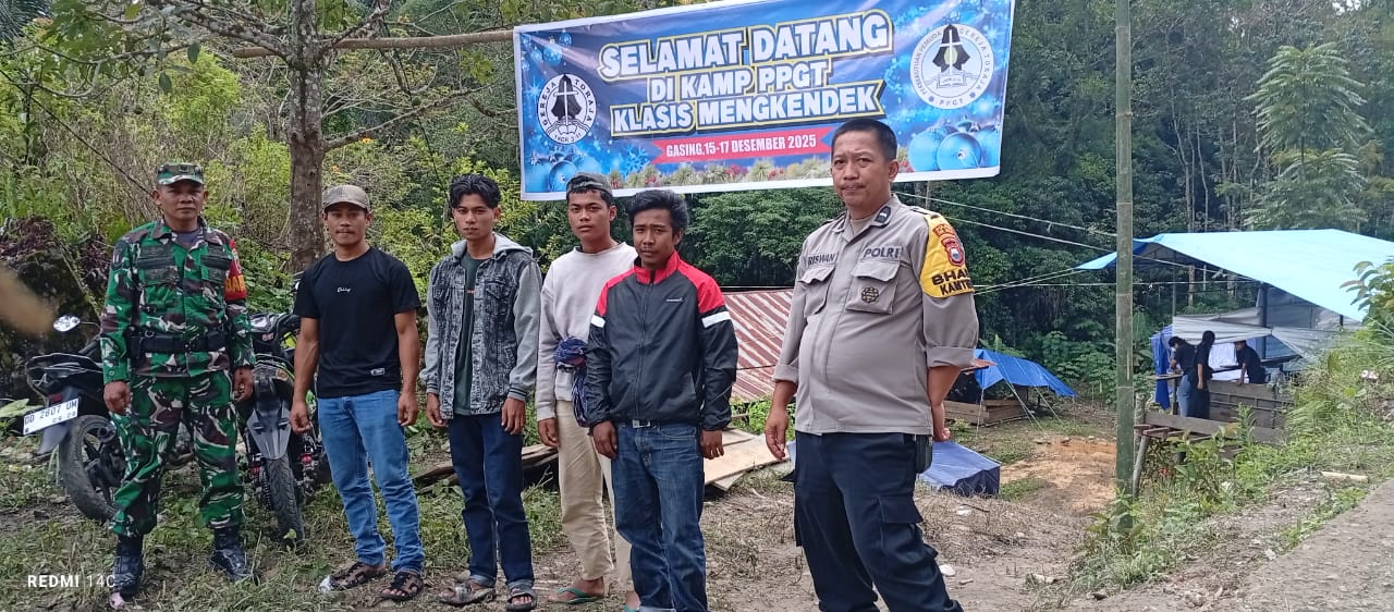 TANA TORAJA — Bhabinkamtibmas Polsek Mengkendek, Aipda Riswan, melaksanakan pengamanan (PAM) ibadah Natal PPGT klasis Mengkendek pada Senin, 15 Desember 2025, sekitar pukul 10.00 WITA, bertempat di Gereja Toraja Jemaat Gasing, Dusun Batu Rondon, Lembang Gasing, Kecamatan Mengkendek, Kabupaten Tana Toraja.