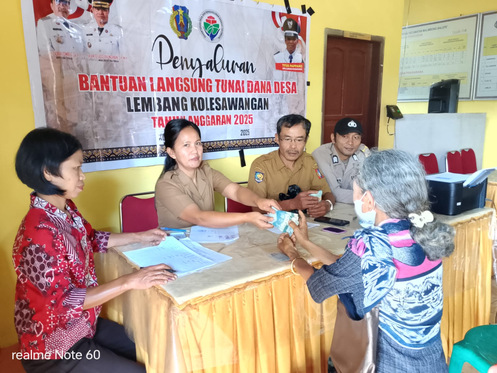 Kegiatan tersebut berlangsung di Kantor Lembang Kole Sawangan, Kecamatan Malimbong Balepe’, Kabupaten Tana Toraja. Monitoring dilakukan guna memastikan proses penyaluran bantuan berjalan dengan aman, tertib, dan tepat sasaran.