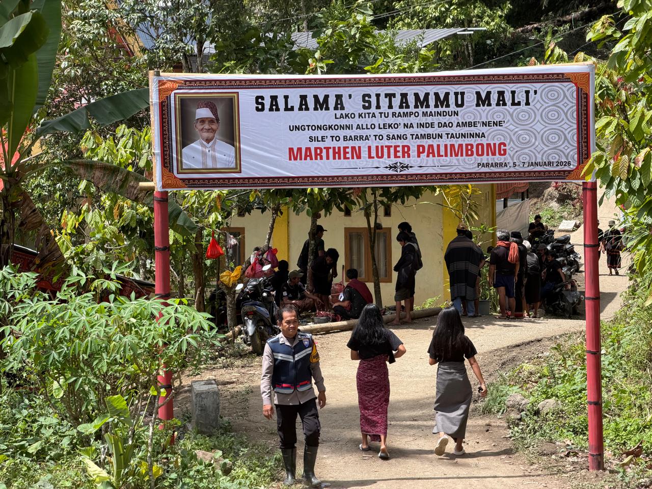 Bonggakaradeng, Tana Toraja – Bhabinkamtibmas Polsek Bonggakaradeng, Brigpol Mahmud Tiku Kanan, melaksanakan pengamanan (PAM) dan pengaturan lalu lintas pada kegiatan adat Rambu Solo’ Almarhum Marthen Luter Palimbong, yang berlangsung di Pararra Lembang Buakayu, Kecamatan Bonggakaradeng, Kabupaten Tana Toraja, pada Senin (05/01/2026) sekitar pukul 11.30 WITA.
