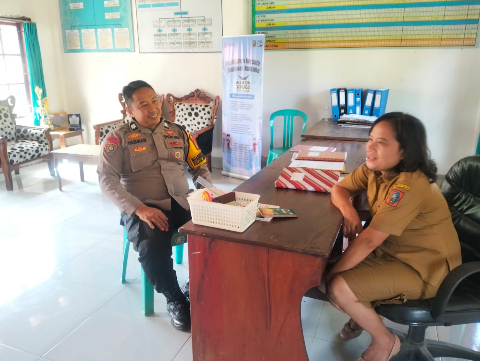 Dalam kegiatan tersebut, Bhabinkamtibmas menyambangi staf Lurah Rantekalua sebagai bagian dari upaya mempererat koordinasi dan kerja sama antara Polri dengan aparatur pemerintahan kelurahan dalam pemeliharaan Kamtibmas.