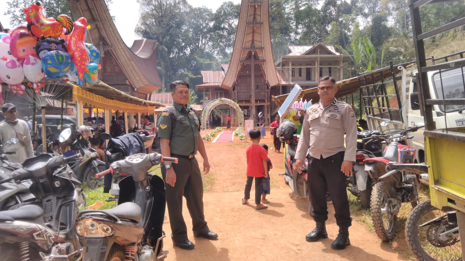 Kehadiran Bhabinkamtibmas dalam kegiatan adat tersebut bertujuan untuk memastikan rangkaian acara pernikahan berjalan dengan aman, tertib, dan lancar, mengingat adanya aktivitas masyarakat dan arus kendaraan di sekitar lokasi kegiatan.