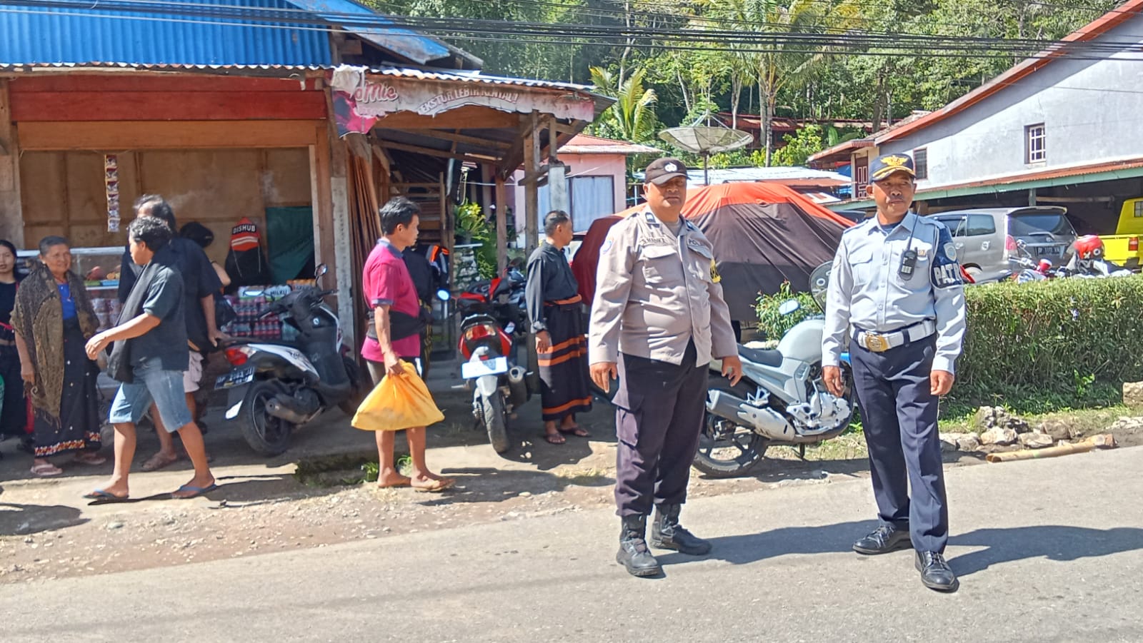 Bhabinkamtibmas Polsek Saluputti, Aiptu Silvanus Madika, melaksanakan kegiatan sambang dan pengaturan lalu lintas di Jalan Poros Pondingao, Lembang Pondingao, Kecamatan Masanda, Kamis (19/2/2026). Kegiatan difokuskan di Pasar Ponding, yang berada di perbatasan Kabupaten Mamasa.