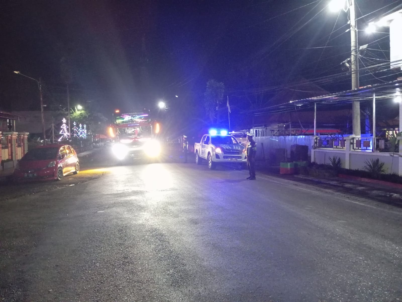 Tana Toraja — Satuan Lalu Lintas Polres Tana Toraja melaksanakan kegiatan Blue Light Patrol (BLP) berupa patroli malam dan pengaturan arus kendaraan di seputaran Kota Makale, Kabupaten Tana Toraja, Sabtu (21/2/26).