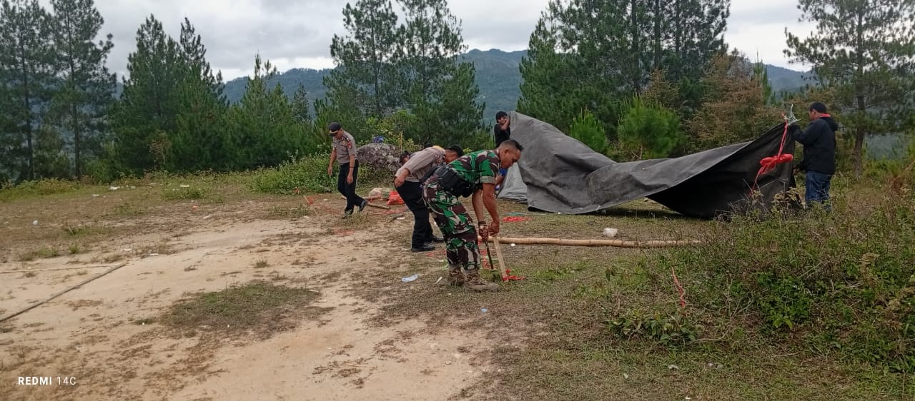 Kapolsek Mengkendek AKP Agustinus Teke melakukan koordinasi dengan personel Koramil 07 Mengkendek untuk bersama-sama turun ke tempat kejadian perkara.