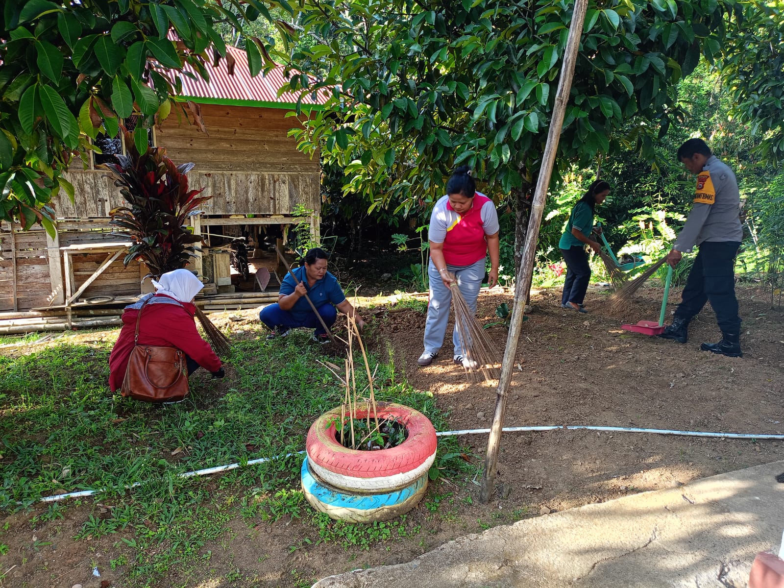 TANA TORAJA – Jumat, 27 Februari 2026 sekitar pukul 07.45 Wita, Bhabinkamtibmas Polsek Makale Aiptu Andarias Lomo melaksanakan kegiatan Jumat Bersih di halaman Kantor Kelurahan Tampo, Kecamatan Makale, Kabupaten Tana Toraja.