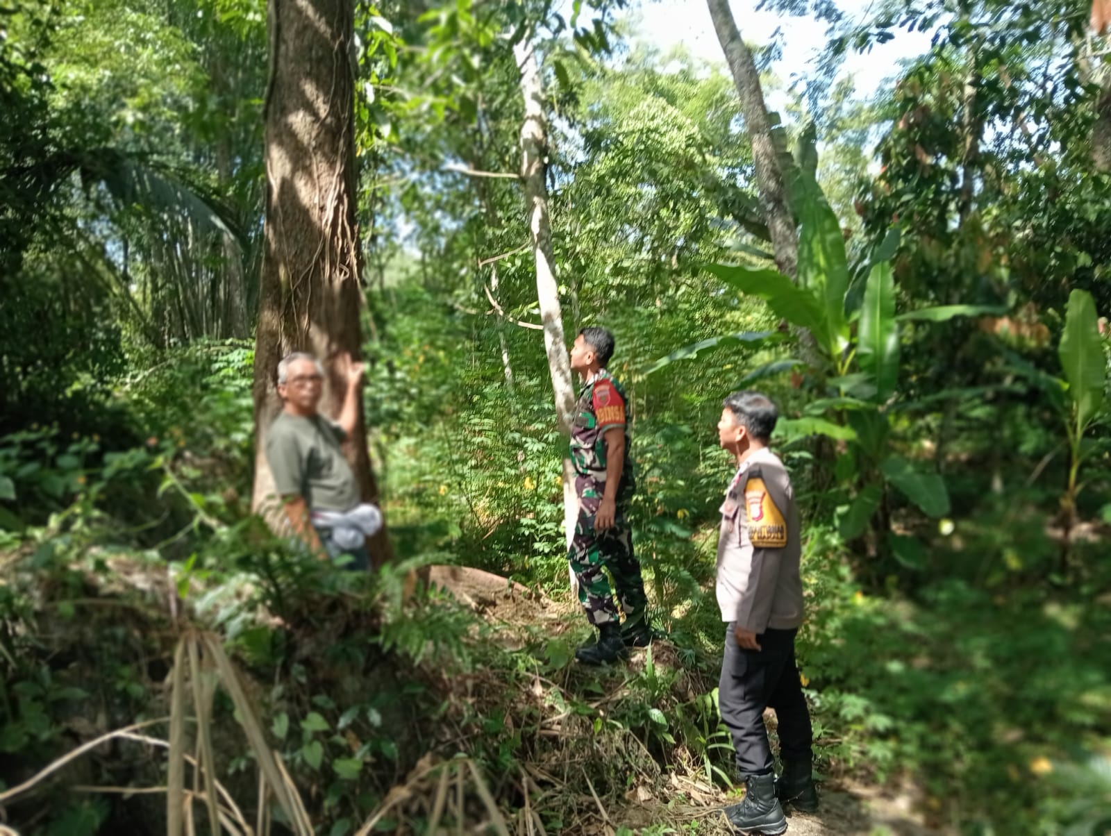 Dalam kegiatan tersebut, Bhabinkamtibmas dan Babinsa mendatangi serta meninjau langsung lokasi pohon yang dipermasalahkan.