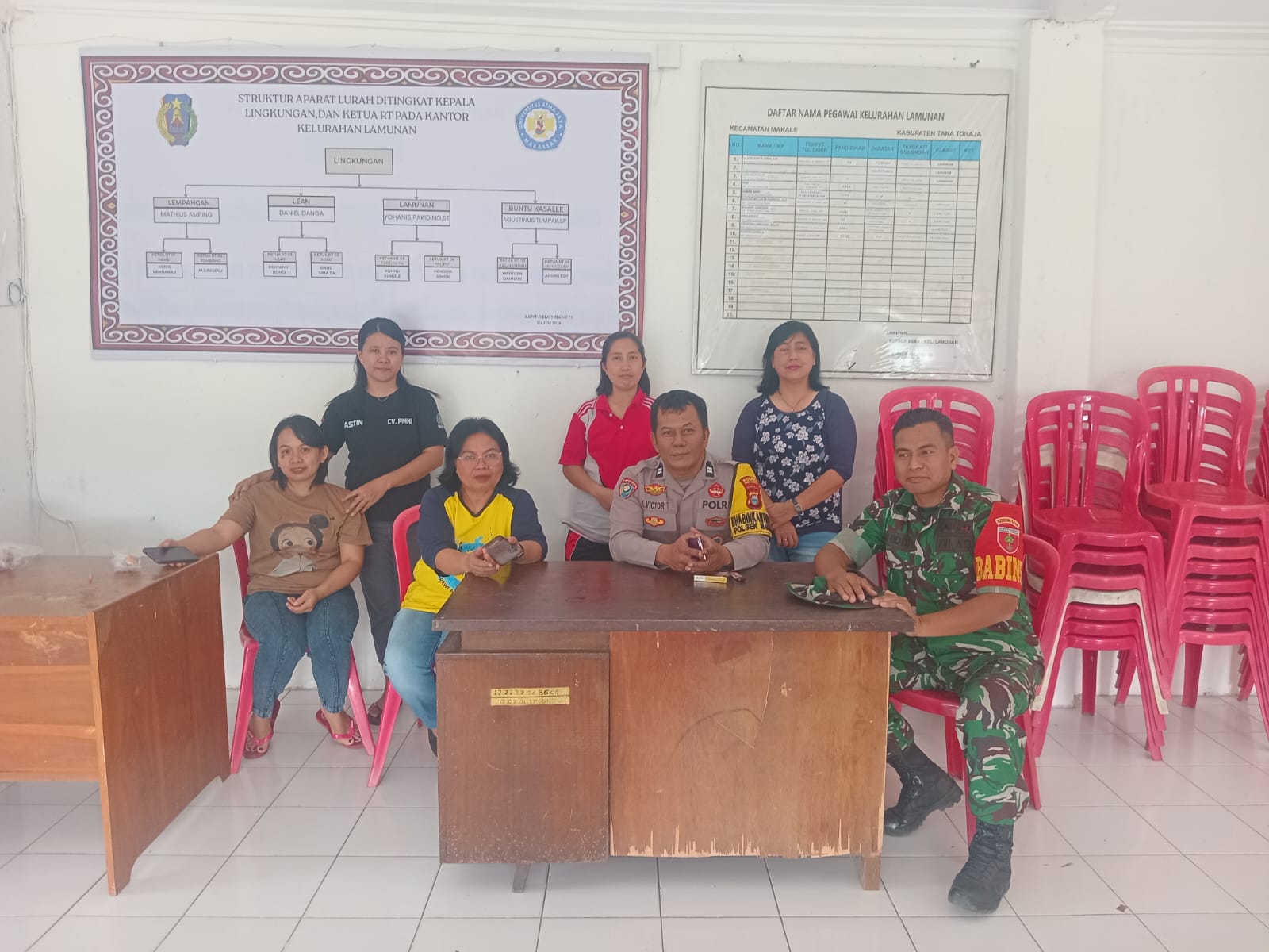 Senin, 2 Maret 2026 pukul 11.00 WITA, Bhabinkamtibmas Polsek Makale Aiptu Emanuel Victor T melaksanakan sambang di Kantor Kelurahan Lamunan, Kecamatan Makale, Kabupaten Tana Toraja.