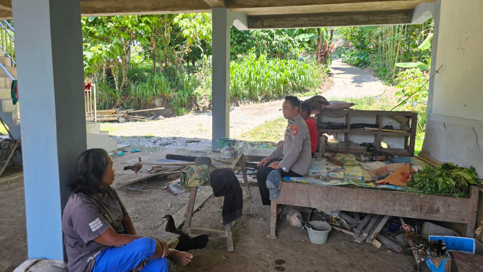 Bhabinkamtibmas juga mengingatkan warga untuk memanfaatkan pekarangan rumah untuk menanam sayur-sayuran sebagai bagian dari program ketahanan pangan.