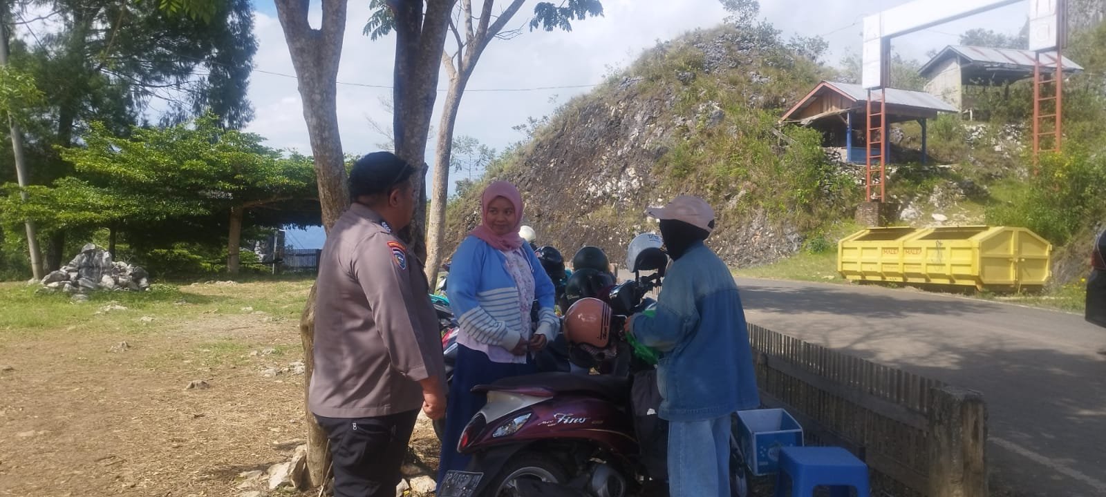 Dalam kegiatan tersebut, Bhabinkamtibmas turut mengimbau warga, khususnya pengendara sepeda motor, untuk memeriksa kondisi kendaraan terutama bagian rem mengingat kondisi jalan yang terjal.