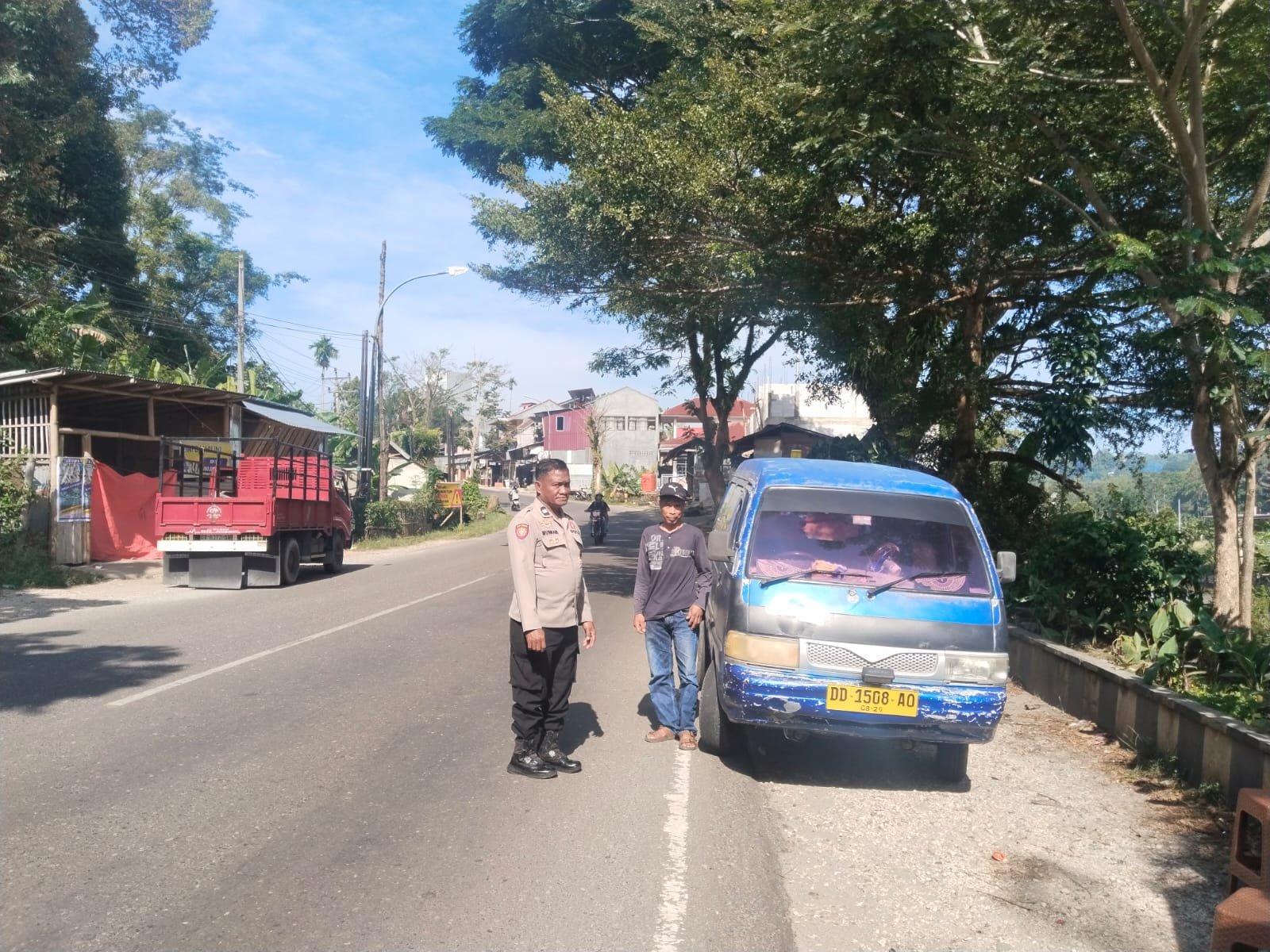 Bhabinkamtibmas Polsek Makale Tertibkan Parkir Kendaraan di Jalan Poros Pantan