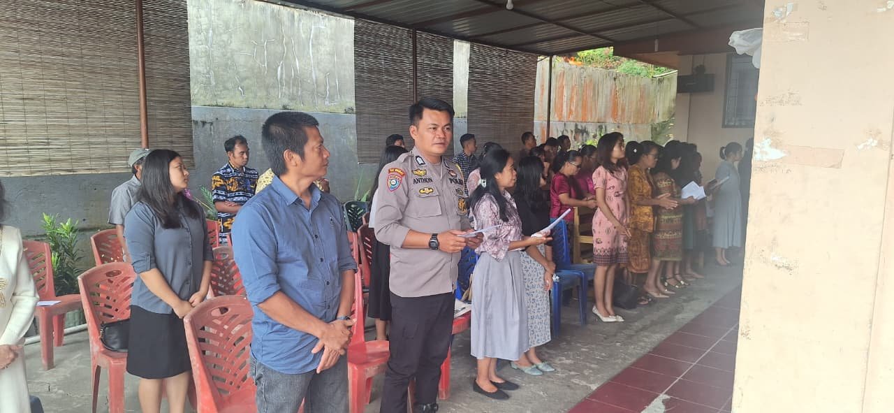 TANA TORAJA — Bhabinkamtibmas Polsek Makale, Bripka Anthonius Ruru, SH, melaksanakan pengamanan ibadah Jumat Agung di Gereja Toraja Jemaat Buisun, Kelurahan Buntu Burake, Kecamatan Makale, Kabupaten Tana Toraja, Jumat (3/4/2026) sekitar pukul 09.00 Wita.