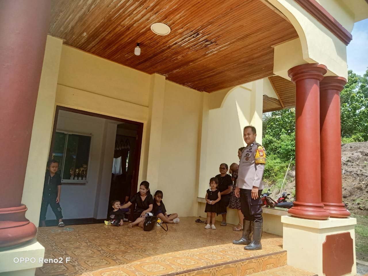 TANA TORAJA — Personel Polsek Bonggakaradeng, Brigpol Mahmud Tiku Kanan, melaksanakan pengamanan dan monitoring ibadah Jumat Agung di Gereja Toraja Jemaat Imanuel Bena, Lembang Buakayu, Kecamatan Bonggakaradeng, Kabupaten Tana Toraja, Jumat (3/3/2026) sekitar pukul 09.00 Wita.