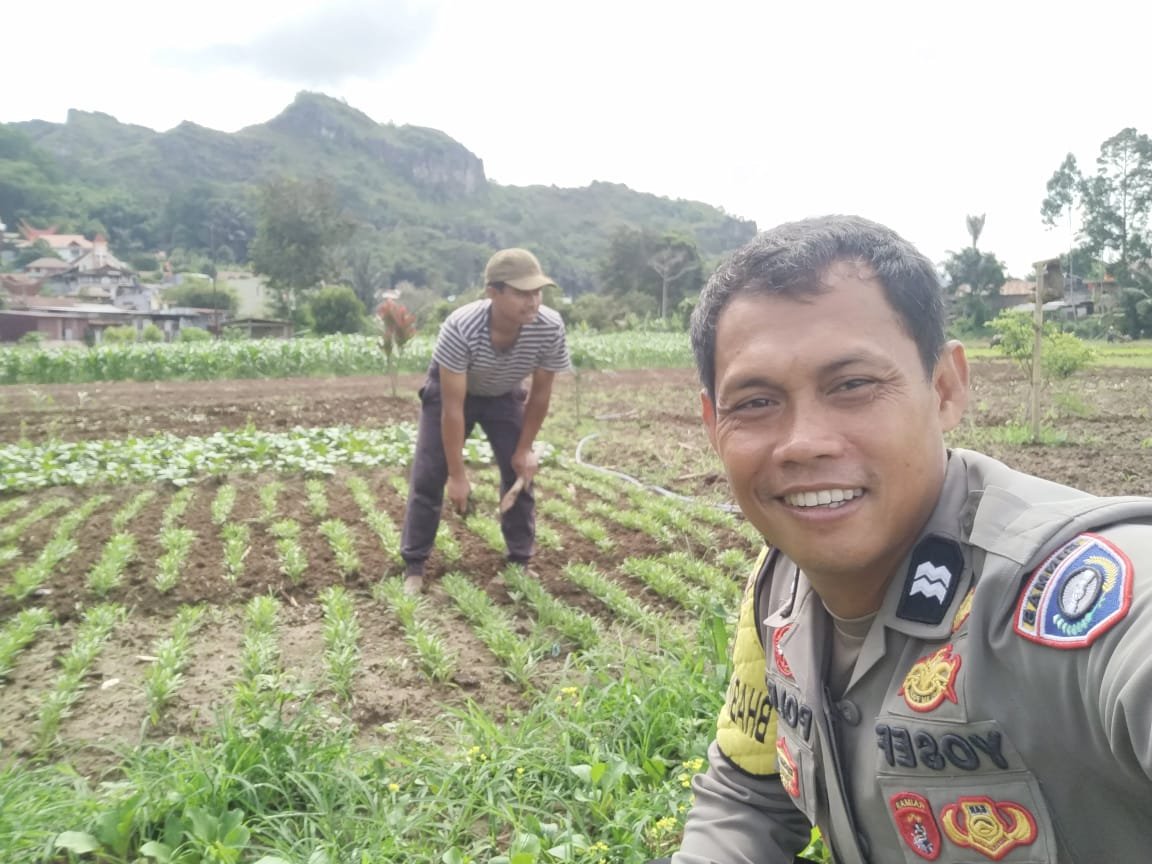 Dalam kegiatan sambang, Bhabinkamtibmas berinteraksi dengan warga binaan yang sedang melakukan aktivitas pertanian.