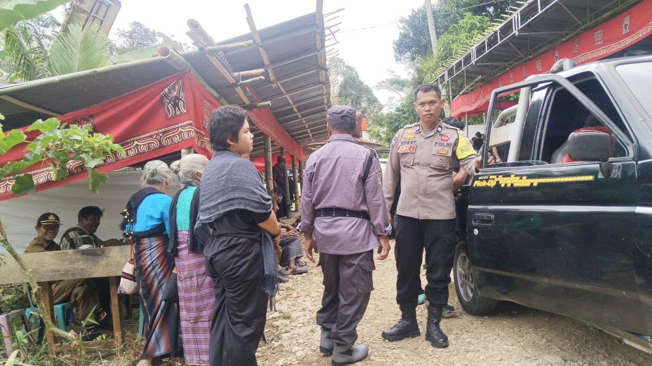 Bhabinkamtibmas Polsek Makale Lakukan Pengamanan dan Pengaturan Lalin di Acara Rambu Solo’ Tarongko