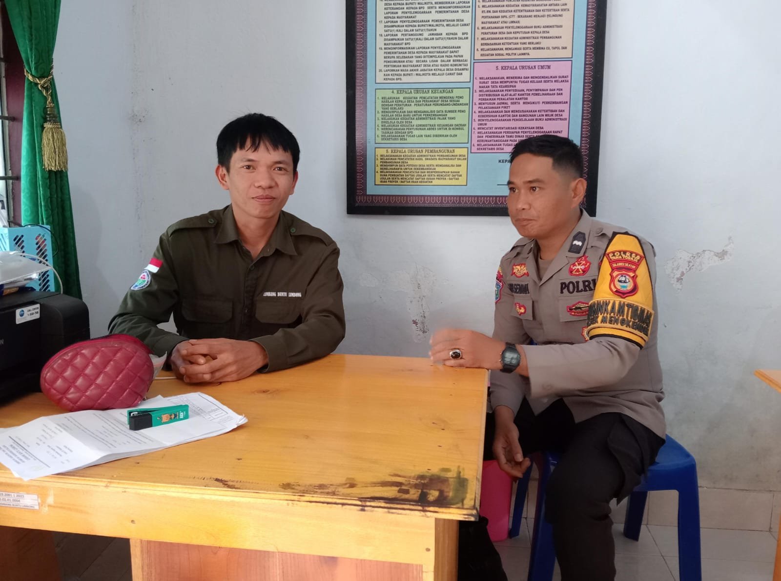 Bhabinkamtibmas Polsek Mengkendek Sambangi Kantor Lembang Buntu Limbong, Sampaikan Imbauan Penipuan Online dan Bencana Alam